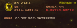 戰(zhàn)神系的終極天賦與前面101所選擇的主系有關(guān)